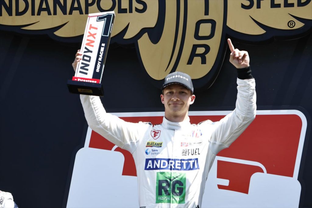 During his time in the feeder series, he set multiple track records at different circuits. These included Detroit (1:04:9896), Mid-Ohio (1:09.7431) and Milwaukee (two-lap average of 152.639mph). He is the first rookie to achieve such domination since Kyle Kirkwood in 2021.
